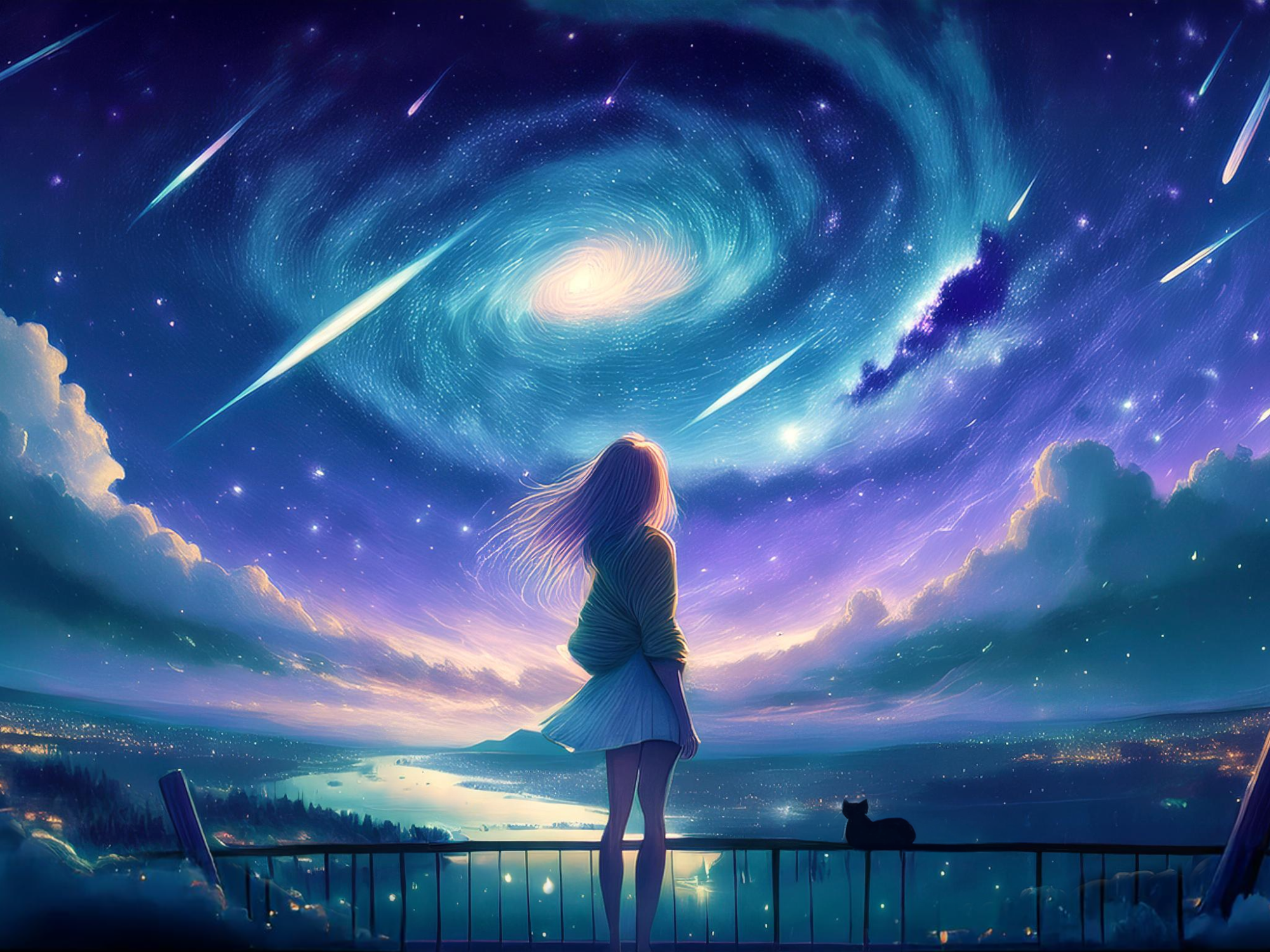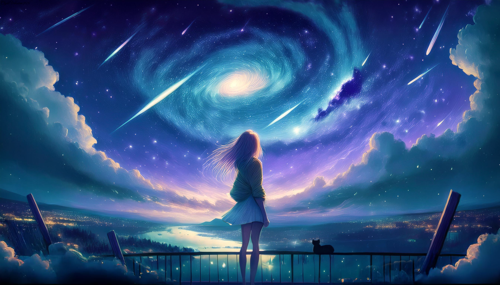Against the fading glow of the sunset in the vast horizon, glimmers and sparks of starlight softly flutter in the air as the night sky slowly reveals a spectacle of celestial mysteries. Amidst the shooting stars and falling meteors, the tight embrace of the thick, nebulous clouds gradually gives way to the full revelation of the heavens.